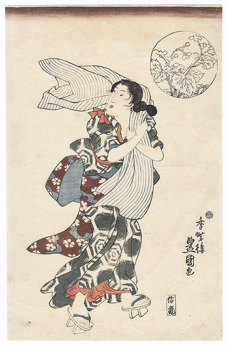 Beauty on a Windy Day by Toyokuni III/Kunisada